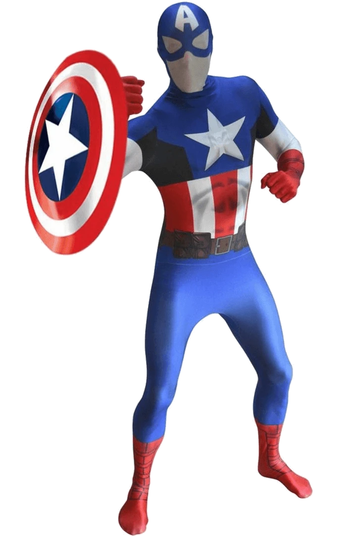 Save the day with the adult deluxe Captain America Zappar Morphsuit Costume.