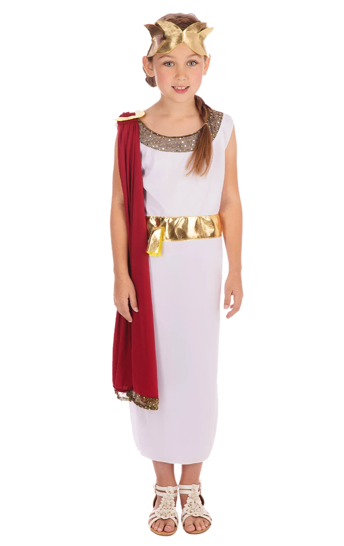 Become important across your empire in the Child Aphrodite Greek Costume! The costume includes a long white dress with red sash, gold belt and headpiece.
