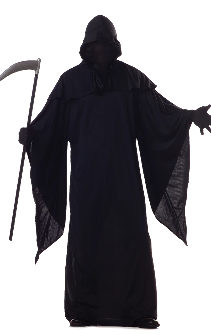 Bring fear to Halloween with the scary Adult Halloween Grim Reaper Costume! This costume includes a long dark hooded robe with wide sleeves and velcro.