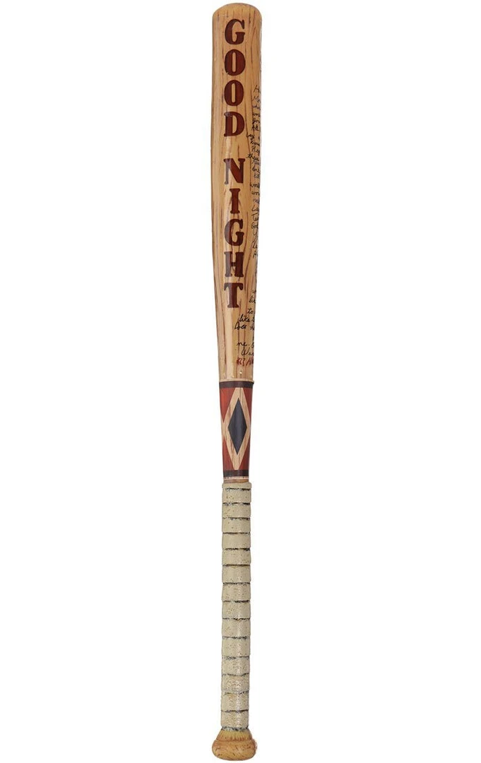 Our Harley Quinn Bat accessory is made from a wood like material with the words, ‘GOOD NIGHT’ printed on the side of it. It’s the perfect accessory for your next superhero and villain’s party!