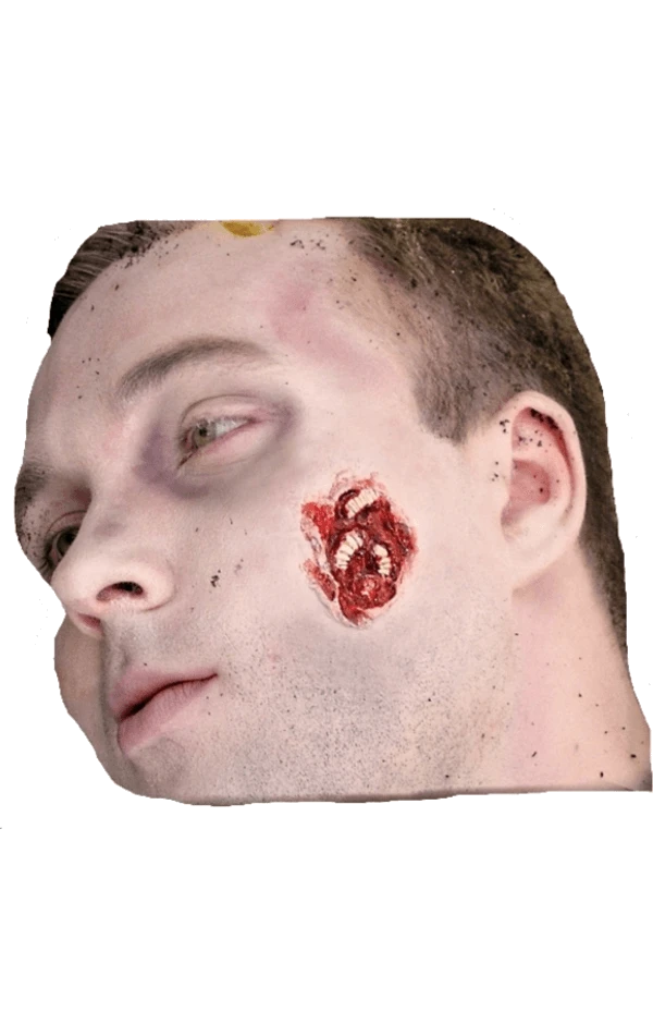 Includes: 1 maggot infested wound, Fake blood, Spirit gum, Instructions