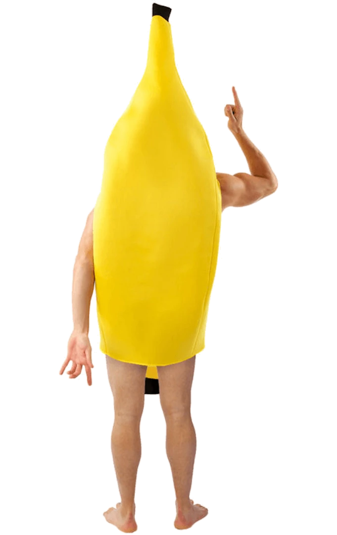 Look fruity in the hilarious and bright Adult Banana Costume! The costume includes an over the head one piece yellow banana tunic with holes for arms, legs and face.