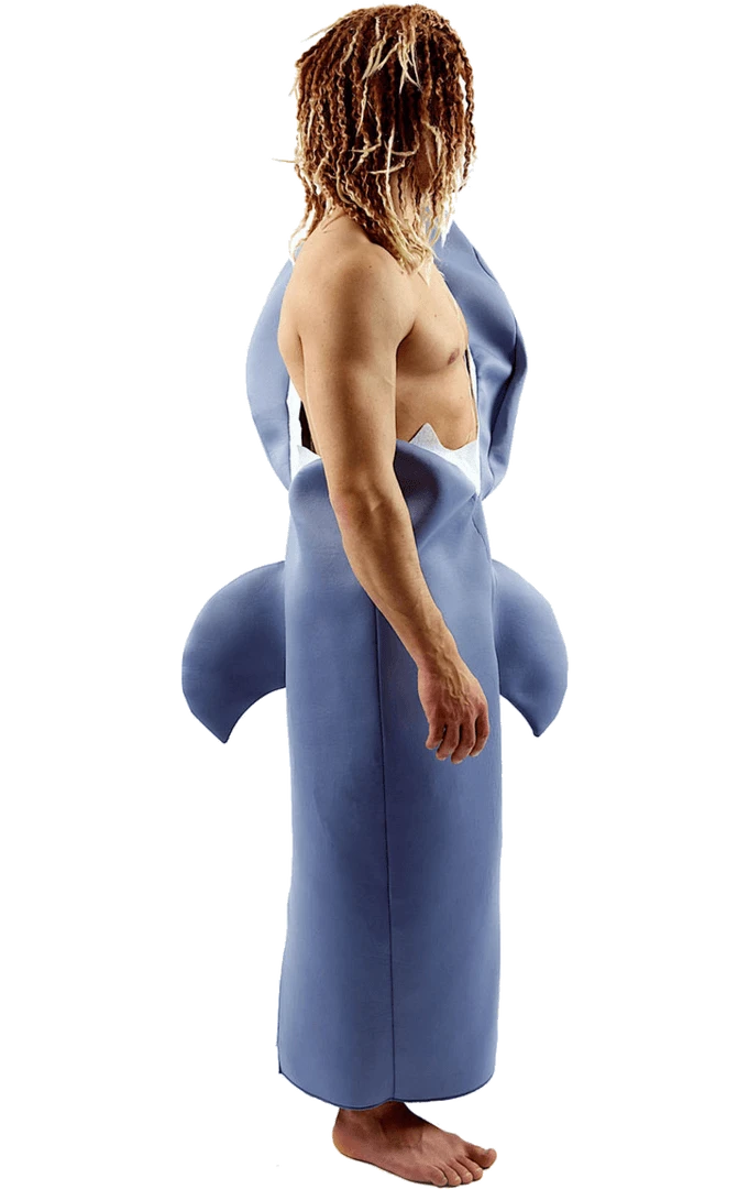 Recreate jaws in the Adult Shark Costume. The costume comes with a grey shark shaped bodysuit with hole for upper body and one arm.