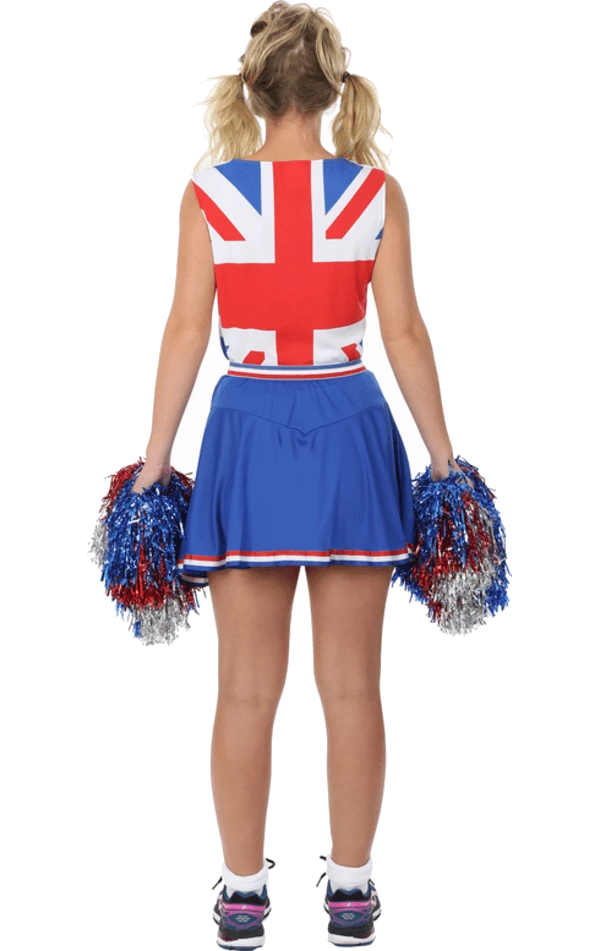 Chant out the team name in the Adult Cheerleader Costume! The costume includes a blue skirt, matching top with white block colour and GB print plus pom poms.