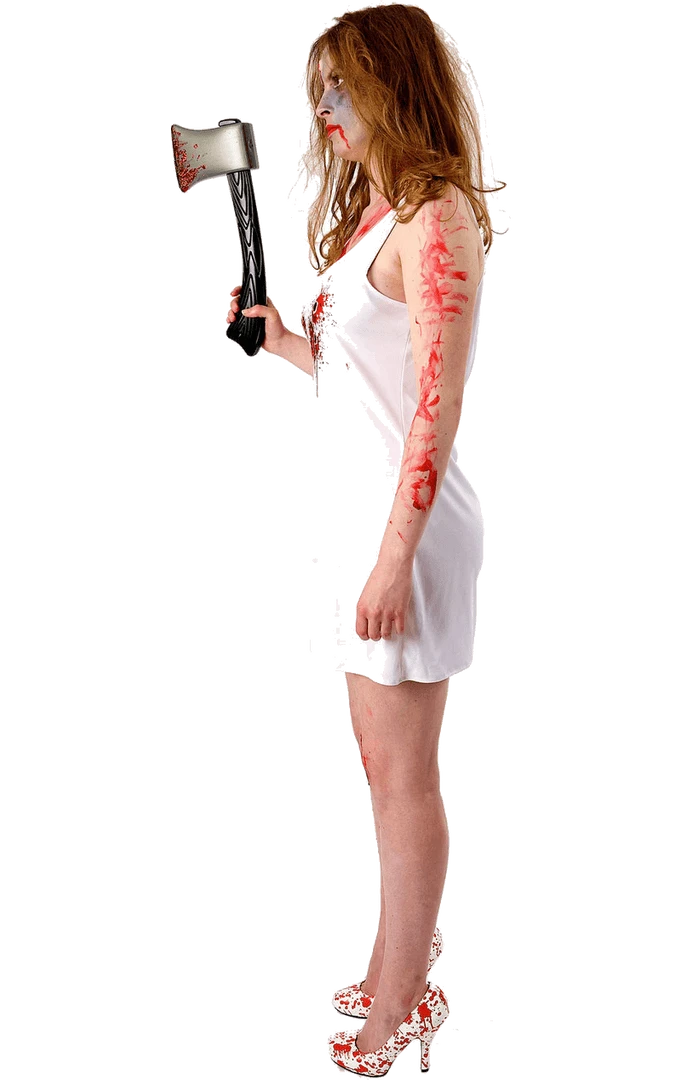 Keep it simple this Halloween with the Adult Bullet Hole Dress! This dress is short, white and contains bullet holes and blood detail.