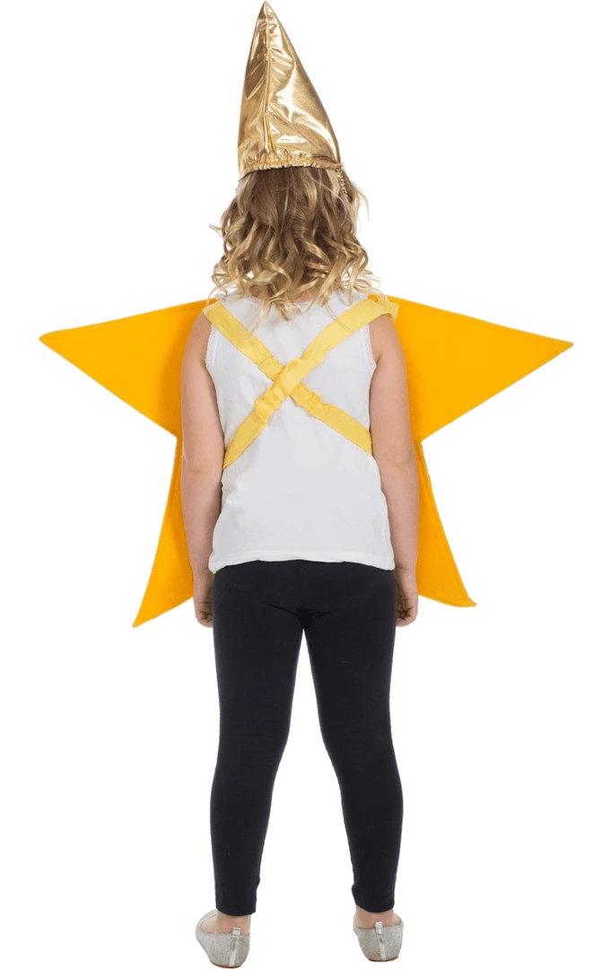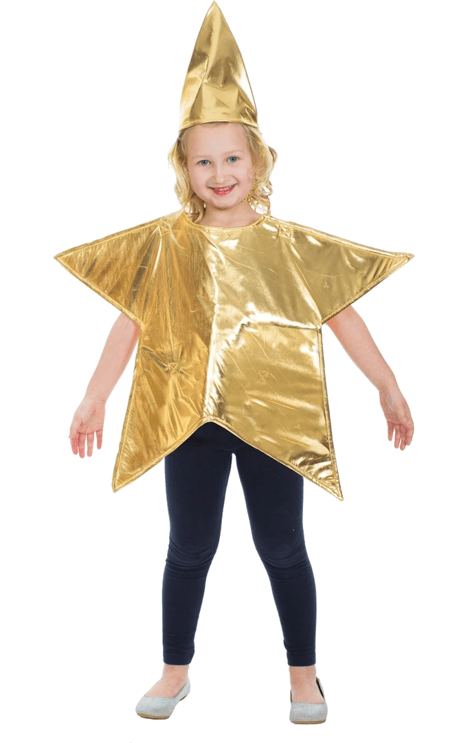 Be the star of the show with the Child Star Costume! This costume includes a shiny gold star shaped tunic and hat.