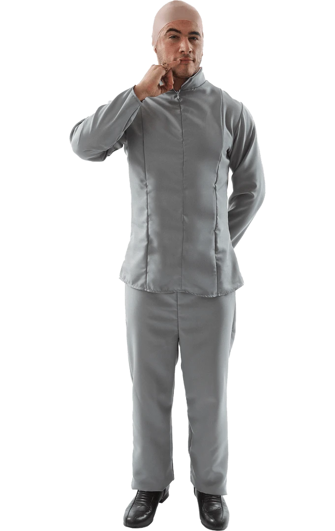 Get into character with the Adult Mr Evil Costume! This costume comes with grey trousers and a matching grey jacket.