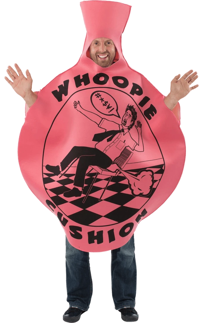 Make some noise in the Adult Whoopie Cushion Novelty Costume! This costume includes a pink whoopie cushion style bodysuit.