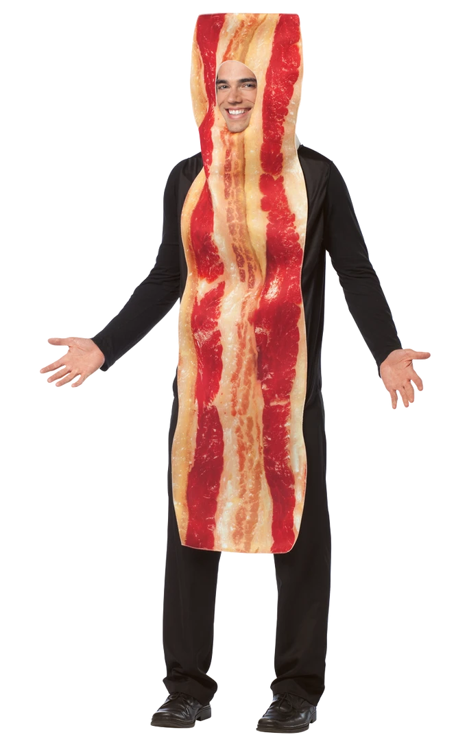 The Bacon Strip tunic slips easily over your own clothes to make you party ready in an instant (and slips off just as quickly when you want to take it off!) We think that you will love partying in this costume so much, you will still be sizzling at breakfast-time!