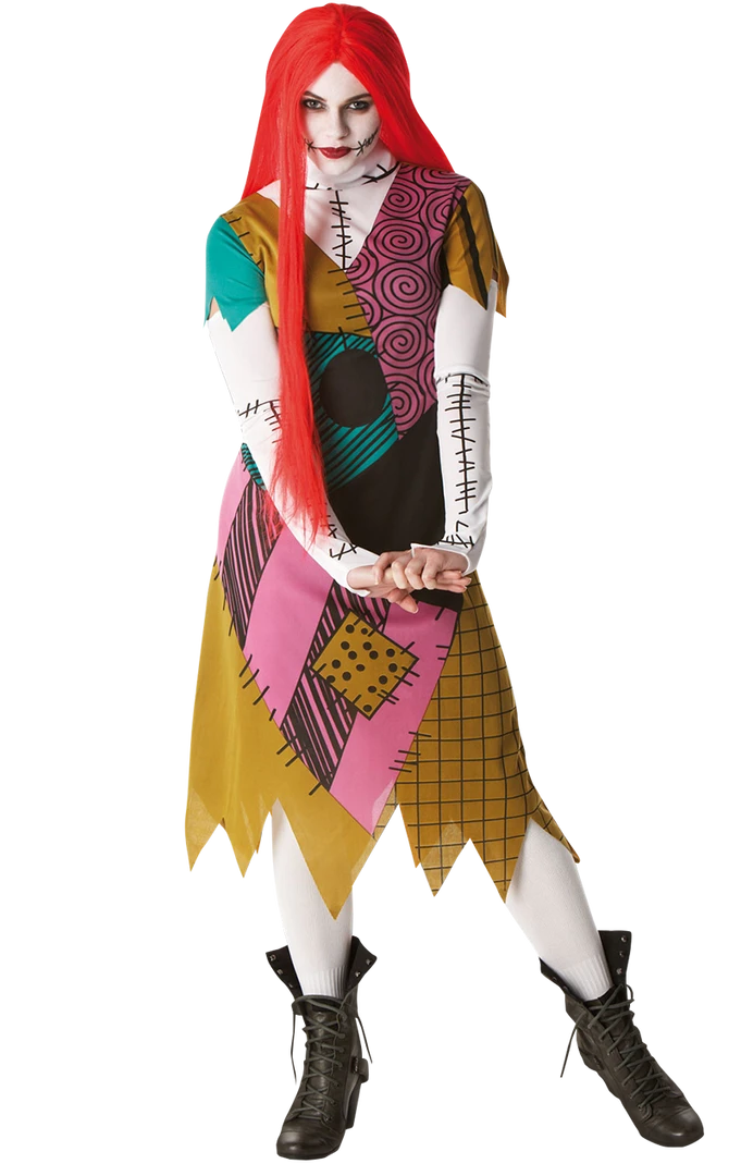 The patchwork dress comes complete with long sleeves that cleverly recreate Sally’s sewn skin. Also included is a striking red wig to finish the look perfectly.