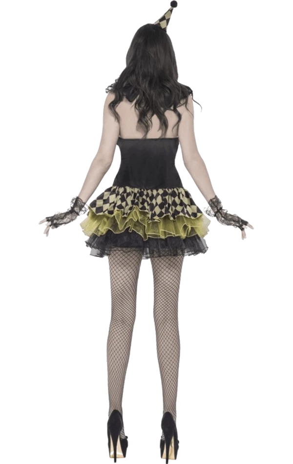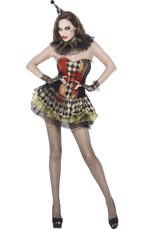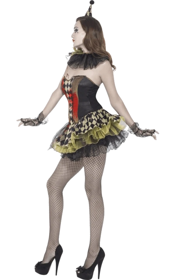 Combine funny and scary with the Adult Zombie Clown Costume! This costume includes a dress, hat and collar.