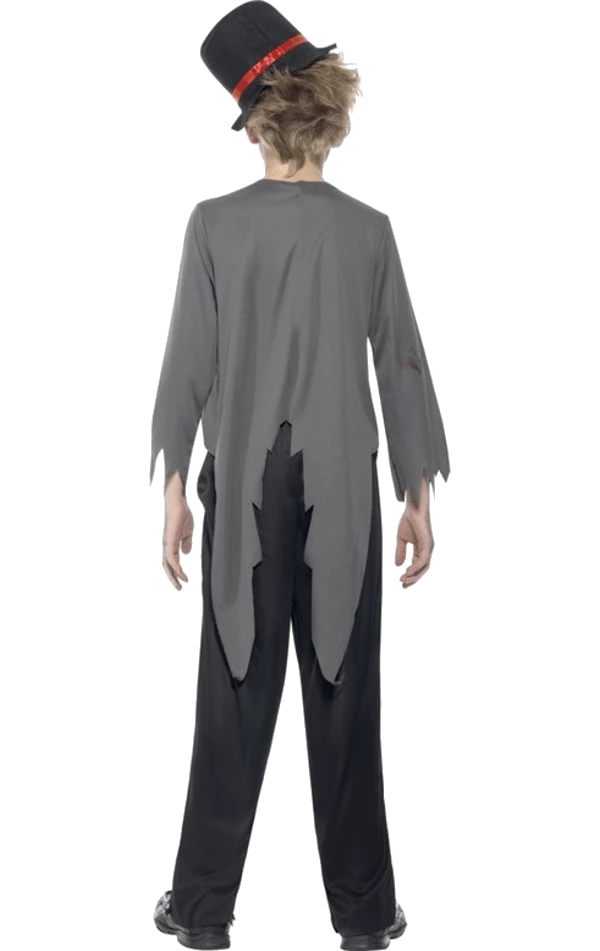 Find your bride in the Child Zombie Groom Costume! This costume includes a jacket, printed mock shirt, trousers and hat.