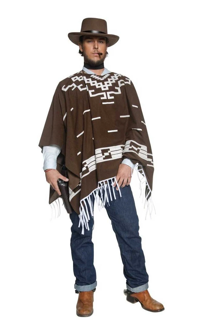 Hold your guns in the Adult Western Authentic Wandering Gunman Costume! This costume includes a poncho, waistcoat with integrated shirt and scarf.