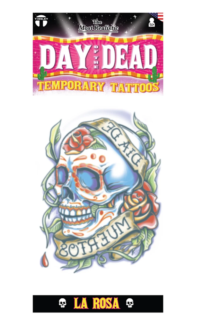 Celebrate Día de Muertos and do Halloween the Mexican way with this incredible La Rosa DOTD Tattoo. The last few years have shown a vast increase in the popularity of Day of The Dead costumes so what better way to show off your fashion credentials than with this intricate inking.