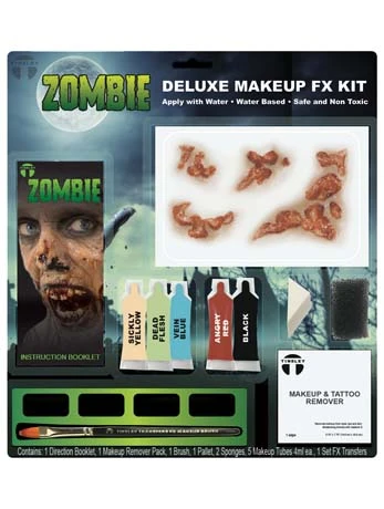 Includes: FX Transfers, 5 Makeup Tubes, 2 Sponges, 1 Brush, 1 Palette,1 Makeup Remover Pack.